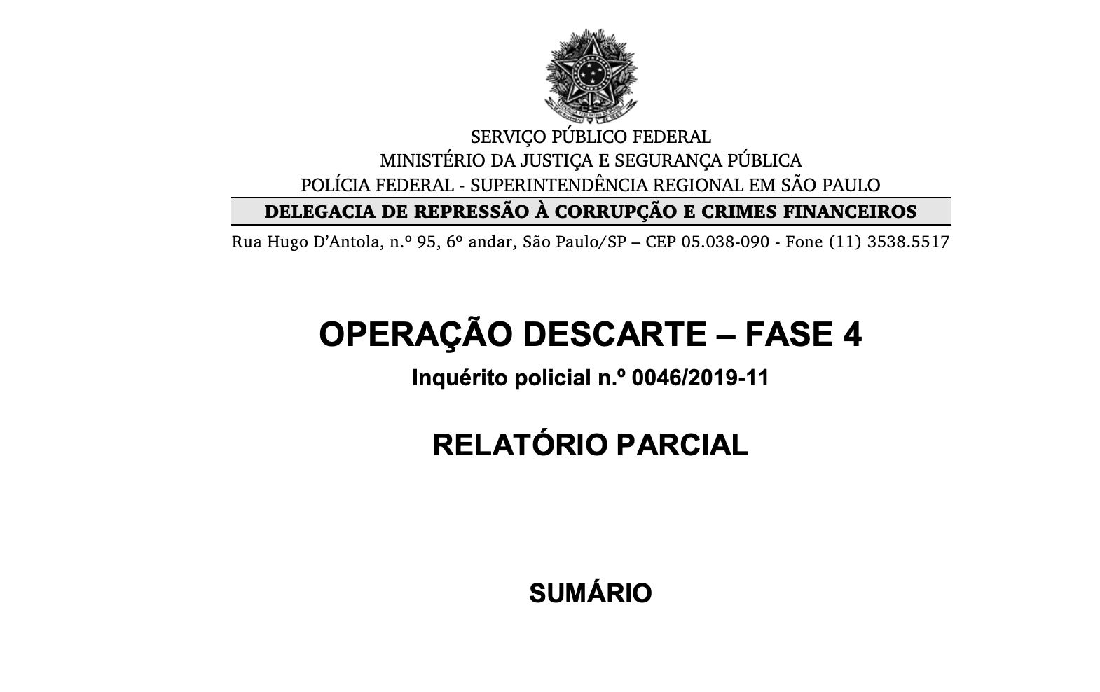 2019 - Corporate Investigation - OPERAÇÃO DESCARTE