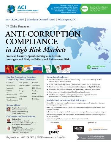 2016 - ACI Forum on Anti Corruption Compliance in High Risk Markets - Washington