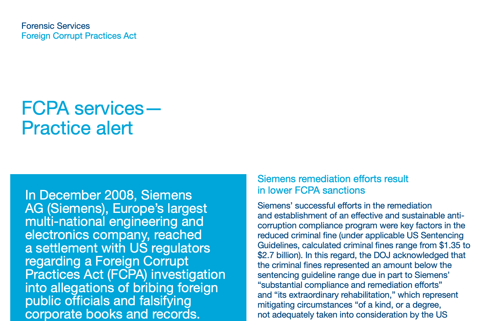 In 2007 and 2008, Leonardo Lopes was the PwC focal point, in Brazil, for the anticorruption compliance remediation project executed by PwC for Siemens globally. He acted since the early stages (compliance assessment), moving towards the design, implementation, testing and training phases.